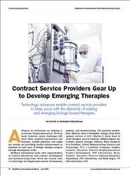 Technology advances enable contract service providers to keep pace with the demands of existing and emerging biologic-based therapies.