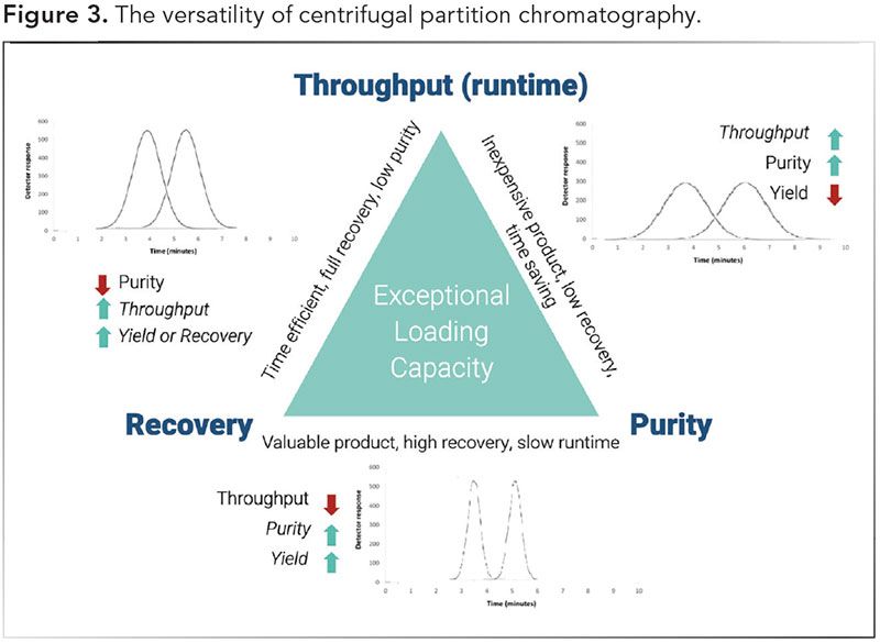 By introducing CPC into the process (Figure 3), one can avoid the admixing and adsorption issues that can occur during RP–HPLC, providing taxadiene with 95% purity and throughput of roughly 250 mg/L.