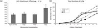 Figure 3: (a) Human mesenchymal stem cell (hMSC) attachment affinity 24 h; (b) Microcarrier concentration of 15 g/L demonstrates maximum hMSC expansion after 11 d.