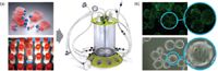 Figure 2: (a) Human mesenchymal stem cells (hMSCs) can be either expanded first on T-flasks or thawed and directly seeded into a Mobius CellReady 3-L bioreactor with microcarriers; (b) Morphology of hMSCs on microcarriers after expansion in the bioreactor (Upper: CellTracker Green; Lower: bright field).