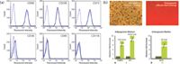 The in-house derived hMSCs used throughout this study were first characterized through analysis of their cell surface antigen profiles and their differentiation ability toward adipogenic and osteogenic lineages (see Figure 1). These cells demonstrated the appropriate CD90+ , CD105+ , CD73+ , CD34- , CD45- , CD11b- cell surface antigen profile and the ability to differentiate toward all three lineages.
