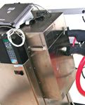 Solute distribution and solution property changes during freezing (at three different freezing rates) and in the frozen state were monitored in a Cryowedge 34. Processing was carried out by a Cryoprocessor B using silicone oil as the heat transfer fluid (HTF) (Syltherm, Dow). Figure 1 shows the Cryowedge when the solution is completely frozen, along with the custom-made sample ports that are marked as positions 0 through 8. Thermocouples used to monitor the process were inserted at positions 1 through 5.