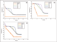 Figure 2. Temperature profiles for (a) fast freezing, (b) intermediate freezing, and (c) slow freezing processes. The actual temperatures recorded by five thermocouples (labelled as TC 1â5) at the various positions indicated in Figure 1 also are shown.