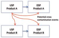 Spill-containment measures can be incorporated into the facility design, for example slopes in the floor and/or bund walls around systems to collect spill. To have a cross-contamination event, a downstream process step for Product A, or any process step for Product B, must be open while there is risk of contamination from the spill (see Figure 2).