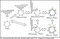 In a typical reaction, an activated monofunctional PEG is reacted with one or more accessible lysine residues or the N-terminal amino group. PEGylation at other nucleophilic sites such as cysteine, histidine, arginine or tyrosine also are possible.29-32 Depending on the activated form of PEG, an ester (PEG succinimidyl succinate) or urethane (PEG succinimidyl carbonate) covalent bond is created between the polymer and the protein.33