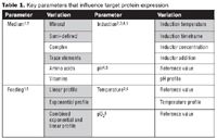 In the second step, researchers examined the key parameters for target protein expression as described in relevant literature (Table 1). The influence of various parameters on protein expression was compared in a total of 26 cultivations at 1-L scale. The studied parameters are highlighted in gray in the table. The DASGIP data management system supported and simplified the analysis and interpretation of the process-relevant information.