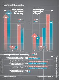 However, the number of people reporting salary increases in 2018 (54.8%) dropped compared with 2017 (61.1%). More respondents reported no change in salary in 2018 (39.4%) compared with 2017 (33.3%).