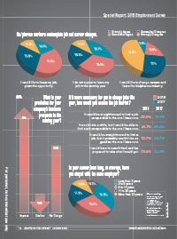 Respondents to the 2018 survey reported slightly more job mobility than in previous surveys. More than 40% stayed with the same employer, on average, for less than five years. Fewer than one-third stayed for 11 or more years.