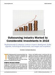 The biopharmaceutical outsourcing industry has been marked by investment in technology and facility upgrades, mergers, acquisitions, and development partnerships in 2016. This article details are some of the latest developments in the biopharmaceutical outsourcing market.