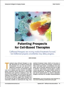 When referring to this article, please cite it as K. Noonan, " Patenting Prospects for Cell-Based Therapies," BioPharm International Development Strategies for Emerging Therapies eBook (September 2017).